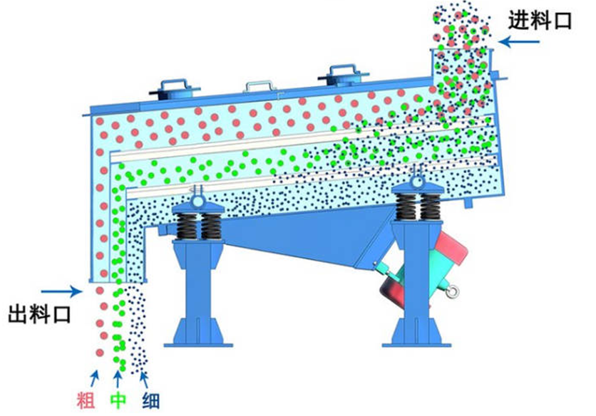 直線振動(dòng)篩:結(jié)構(gòu)以篩箱為主體,內(nèi)置單層或多層篩網(wǎng)。其核心動(dòng)力來(lái)自兩臺(tái)同步反向旋轉(zhuǎn)的振動(dòng)電機(jī),產(chǎn)生直線激振力。設(shè)備通過(guò)減振彈簧支撐于底座,以隔離振動(dòng)。結(jié)構(gòu)堅(jiān)固,適合大產(chǎn)量連續(xù)作業(yè)。