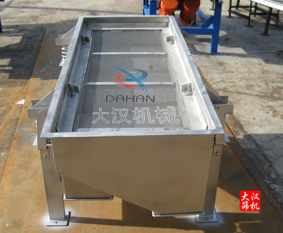 “大漢牌”DZSF-512-1S食品直線振動(dòng)篩篩面寬為50mm,長1200mm,一層篩網(wǎng)二出口,與物料接觸部材質(zhì)以及直線篩篩網(wǎng)均為304不銹鋼,內(nèi)部打磨拋光,干凈衛(wèi)生,支架以及電機(jī)板、導(dǎo)力板為Q235碳鋼材質(zhì),噴防銹漆。