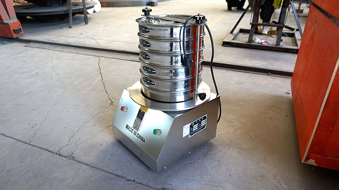 電機(jī)帶動(dòng)上部振動(dòng)托盤振動(dòng),由振動(dòng)托盤傳導(dǎo)至安放在振動(dòng)盤上部篩框上,然后由需要檢測(cè)目數(shù)的篩框把小于篩面網(wǎng)孔的物料顆粒篩分至下層篩框,一般情況下,試驗(yàn)篩一次可安裝1-7層標(biāo)準(zhǔn)篩框,同時(shí)篩分出2-7個(gè)不同規(guī)格的待檢樣品。