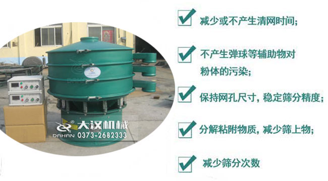 產(chǎn)品簡介:碳粉生產(chǎn)工藝中進(jìn)行的過濾、篩分、分級中要使用的設(shè)備就是振動篩分機(jī)。在這里大漢振動篩廠家推薦您使用超聲波振動篩。下面詳細(xì)介紹下超聲波振動篩一些情況。