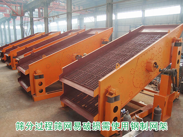 使用礦用篩分機(jī)進(jìn)行篩分時,因其篩分的物料會有一定的的重量,使用普通網(wǎng)架容易造成破損的問題,所以需要使用鋼質(zhì)網(wǎng)架來代替木質(zhì)網(wǎng)架,增加網(wǎng)架和篩網(wǎng)的承受能力,更換為鋼制網(wǎng)架的大型礦用振動篩不僅換網(wǎng)比較方便,更可以延長篩網(wǎng)、篩機(jī)的使用壽命。
