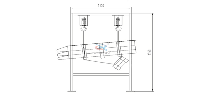 整個設(shè)備由篩箱、網(wǎng)架、篩網(wǎng)、2臺臥式振動篩電機、減震彈簧、進(jìn)出料口、上蓋組成,除此之外還有高度可按需求定制的支架通過四個吊鉤把整個設(shè)備吊掛起來使其處于懸空狀態(tài)。